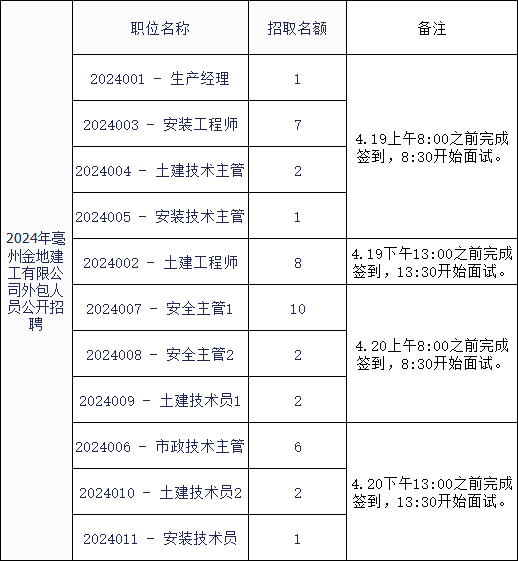 為切實做好2024年亳州金地建工有限公司外包人員公開招聘面試工作,確保面試工作嚴謹有序、客觀、公正、公開,根據(jù)《2024年亳州金地建工有限公司外包人員公開招聘》精神,制定本面試方案。