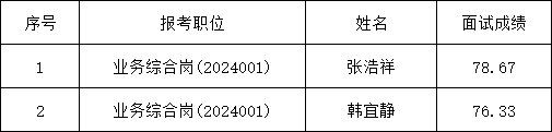 根據(jù)《2024年產(chǎn)投集團亳州金地工程造價咨詢有限公司外包人員公開招聘》精神,經(jīng)面試、體檢、考察等環(huán)節(jié),確定張浩祥、韓宜靜2名同志符合本次招聘條件,擬錄用為產(chǎn)投集團亳州金地工程造價咨詢有限公司外包人員,現(xiàn)予公示。