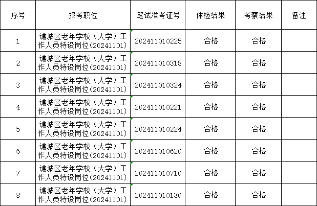 關于2024年譙城區(qū)老年學校(大學)工作人員特設崗位公開招聘擬入圍人員體檢、考察結果公示
