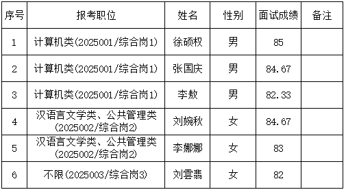根據(jù)《2025年亳州市譙郡產(chǎn)業(yè)投資集團(tuán)有限公司外包人員公開(kāi)招聘公告》精神,經(jīng)面試、體檢、考察等環(huán)節(jié),確定徐碩權(quán)等6名同志符合本次招聘條件,現(xiàn)對(duì)6名擬錄用人員予以公示。