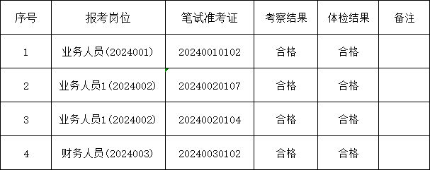 根據(jù)《亳州市譙城區(qū)魏武工程管理咨詢有限責(zé)任公司2024年工作人員公開招聘公告》相關(guān)規(guī)定,現(xiàn)將擬入圍對象體檢、考察結(jié)果公示如下: